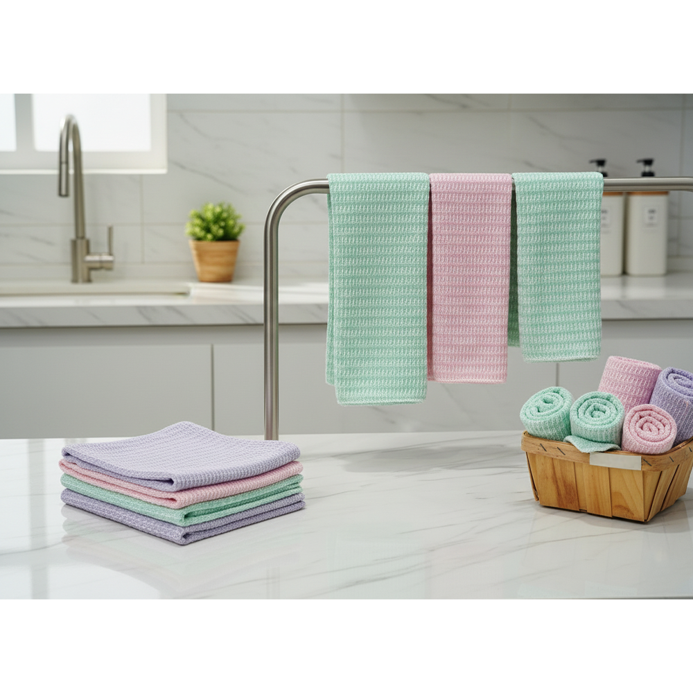 • متعددة الاستخدامات : مثالية لتلميع الزجاج، تجفيف الأواني، تنظيف أسطح المطبخ، أو كفوطة عناية شخصية فائقة النعومة.