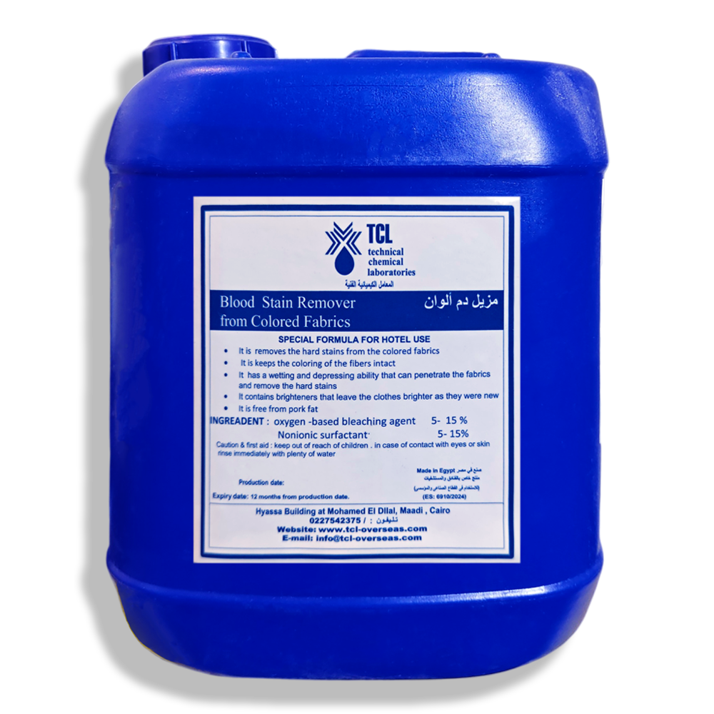 هو منتج متطوراً من إنتاج المعامل الكيميائية الفنية (TCL)، صُمم خصيصاً لإزالة بقع الدم الصعبة من الأقمشة الملونة دون التأثير على زهاء الألوان أو سلامة الأنسجة.