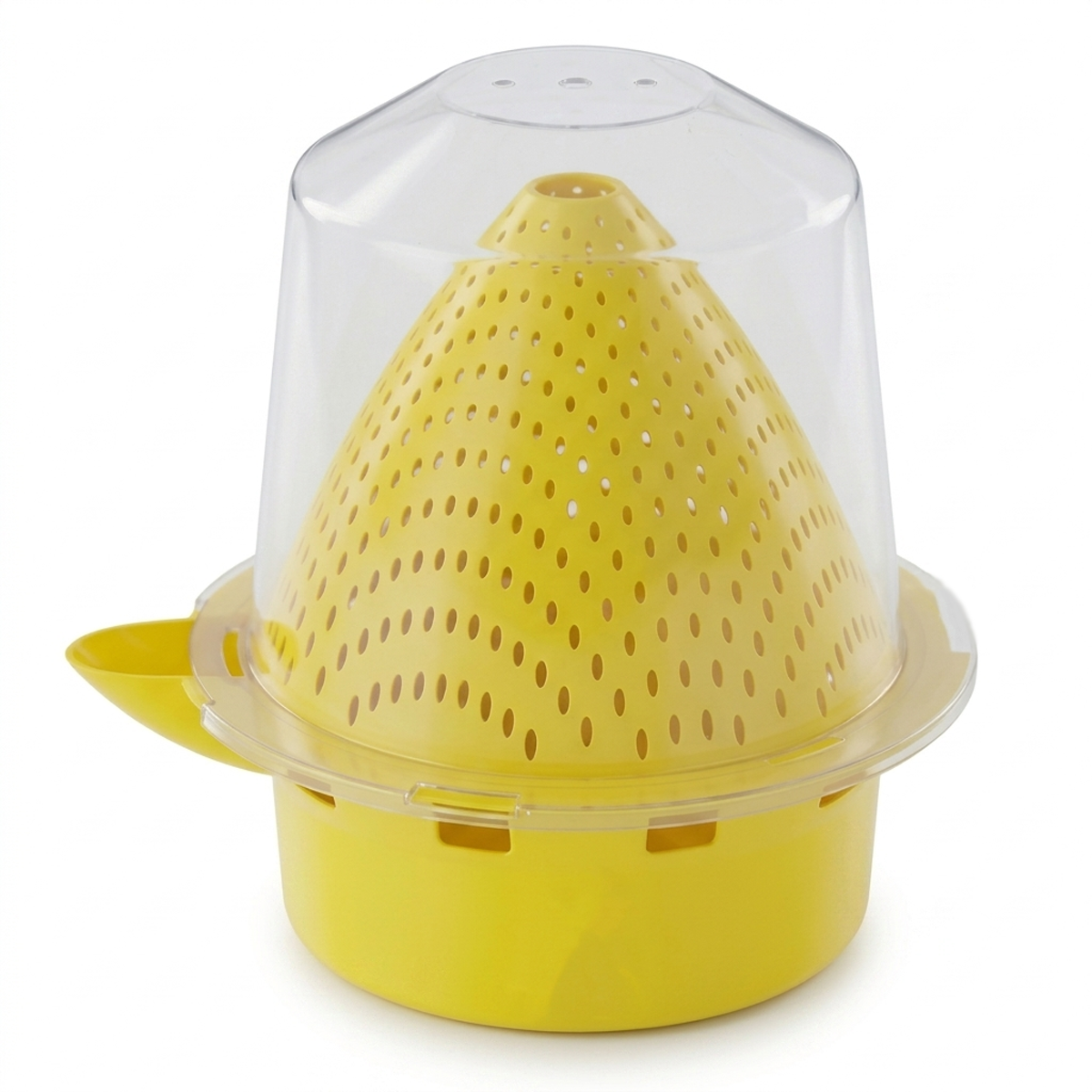 - التركيب : ضع المخروط الشبكي فوق القاعدة، ثم أحكم إغلاق الغطاء الشفاف الخارجي.