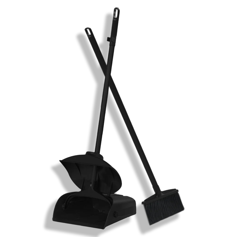 - توفير مساحة : يمكن تعليق المكنسة في اليد الخاصة بالجاروف عبر المشبك المدمج، مما يسهل تخزين الطقم بشكل رأسي ومنظم.