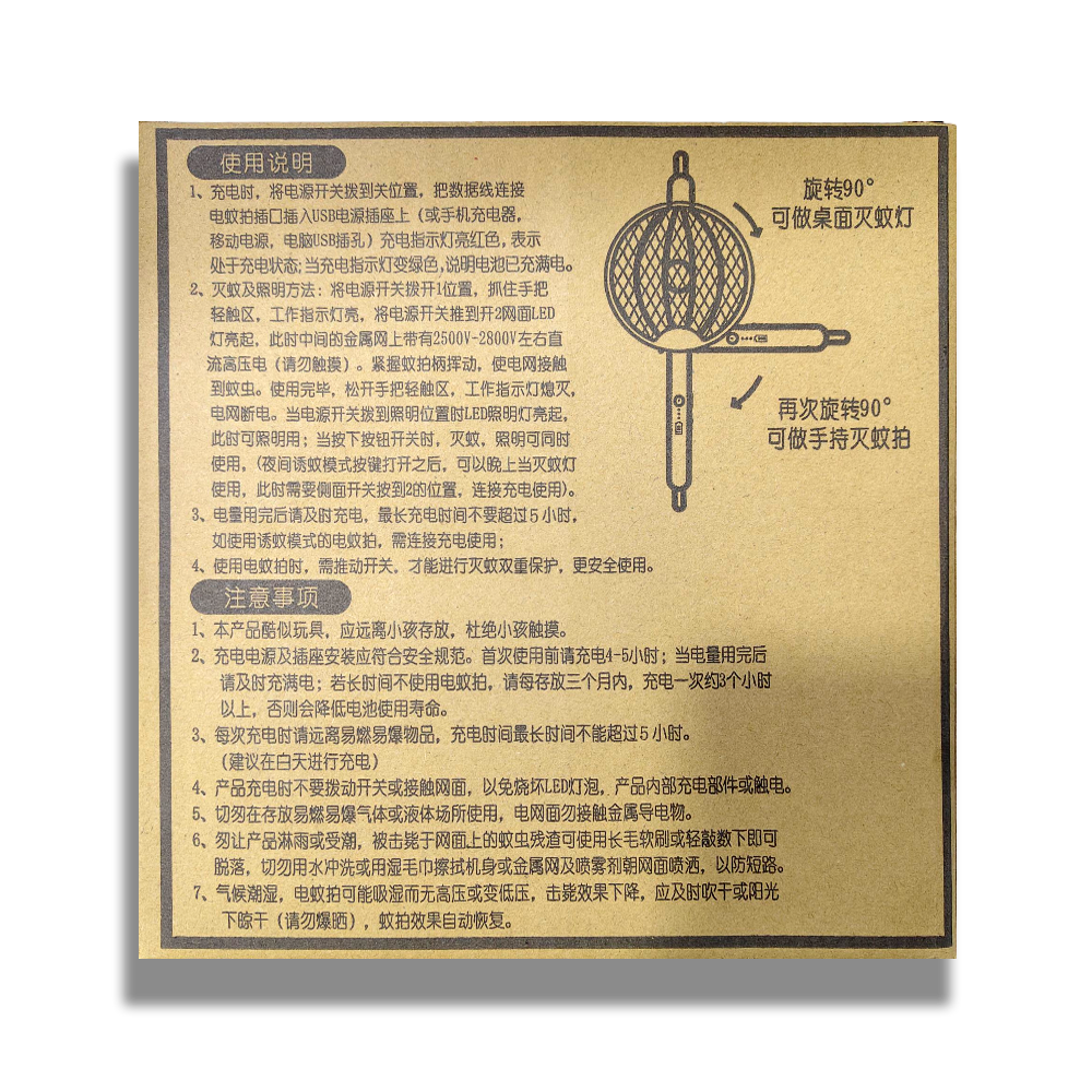 يمكن ثنيه وتشغيله وتعليقه وإستخدامه كصاعق يجذب الحشرات للضوء الخاص به ويصعقها ” دائم التشغيل “.