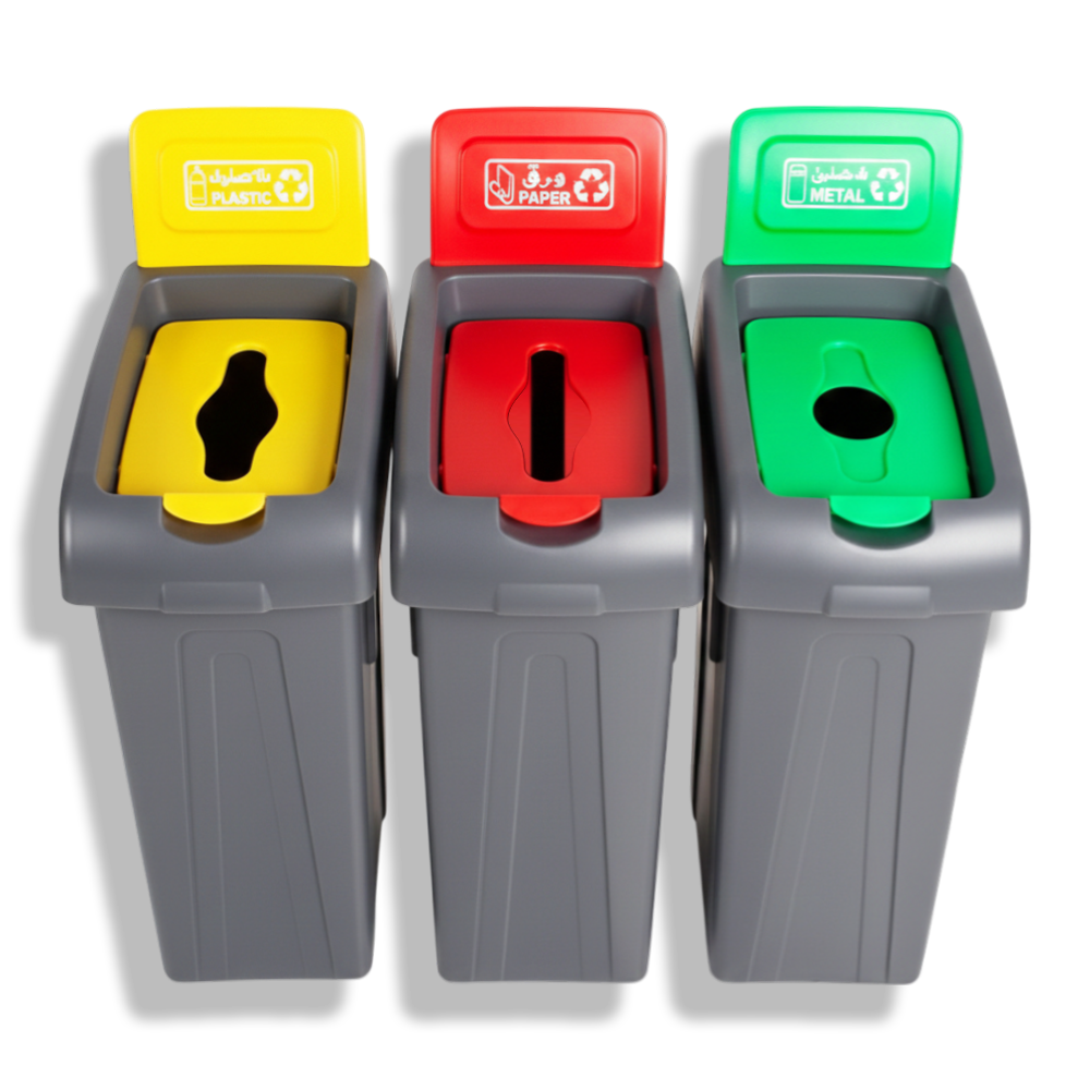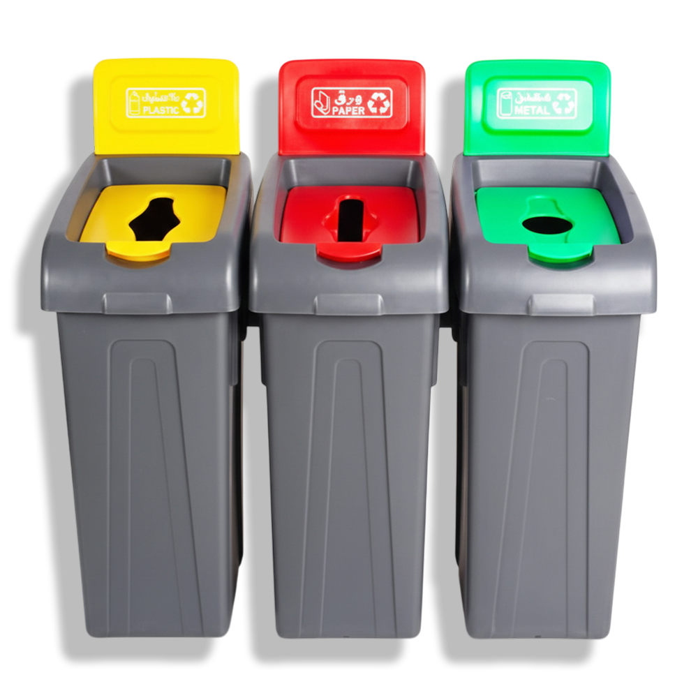 طقم صناديق إعادة التدوير الثلاثي – سفير (100 لتر / للحاوية الواحدة)