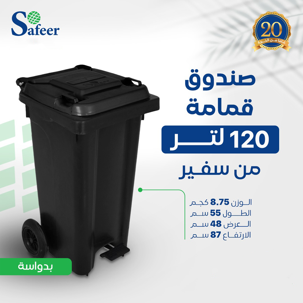 صندوق قمامة ( زبالة ) Safeer الأصلي حجم 120 لتر بدواسة عالي الجودة