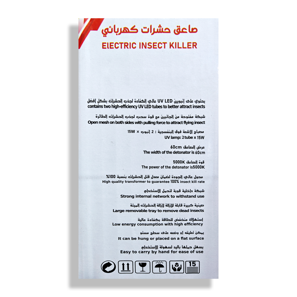 - يتميز بفعالية عالية في جذب الحشرات الطائرة المتواجدة في المكان بفضل وجود 2 لمبة أشعة UV.