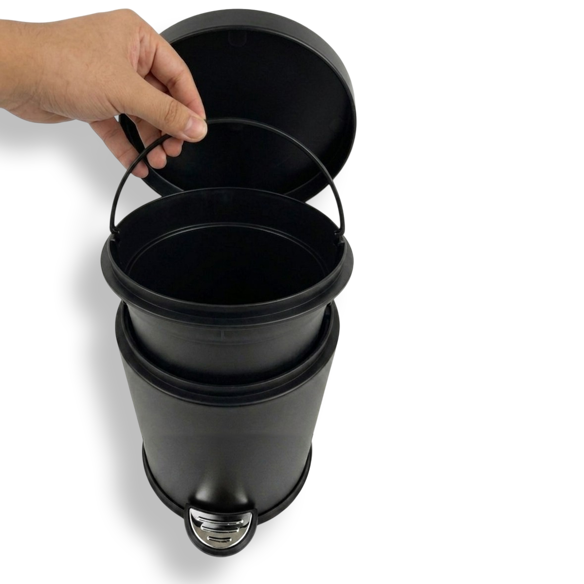 سهولة التفريغ : بفضل الدلو الداخلي البلاستيكي القابل للإزالة، يمكنك تفريغ القمامة وغسل الدلو بشكل مستقل وبكل سهولة.