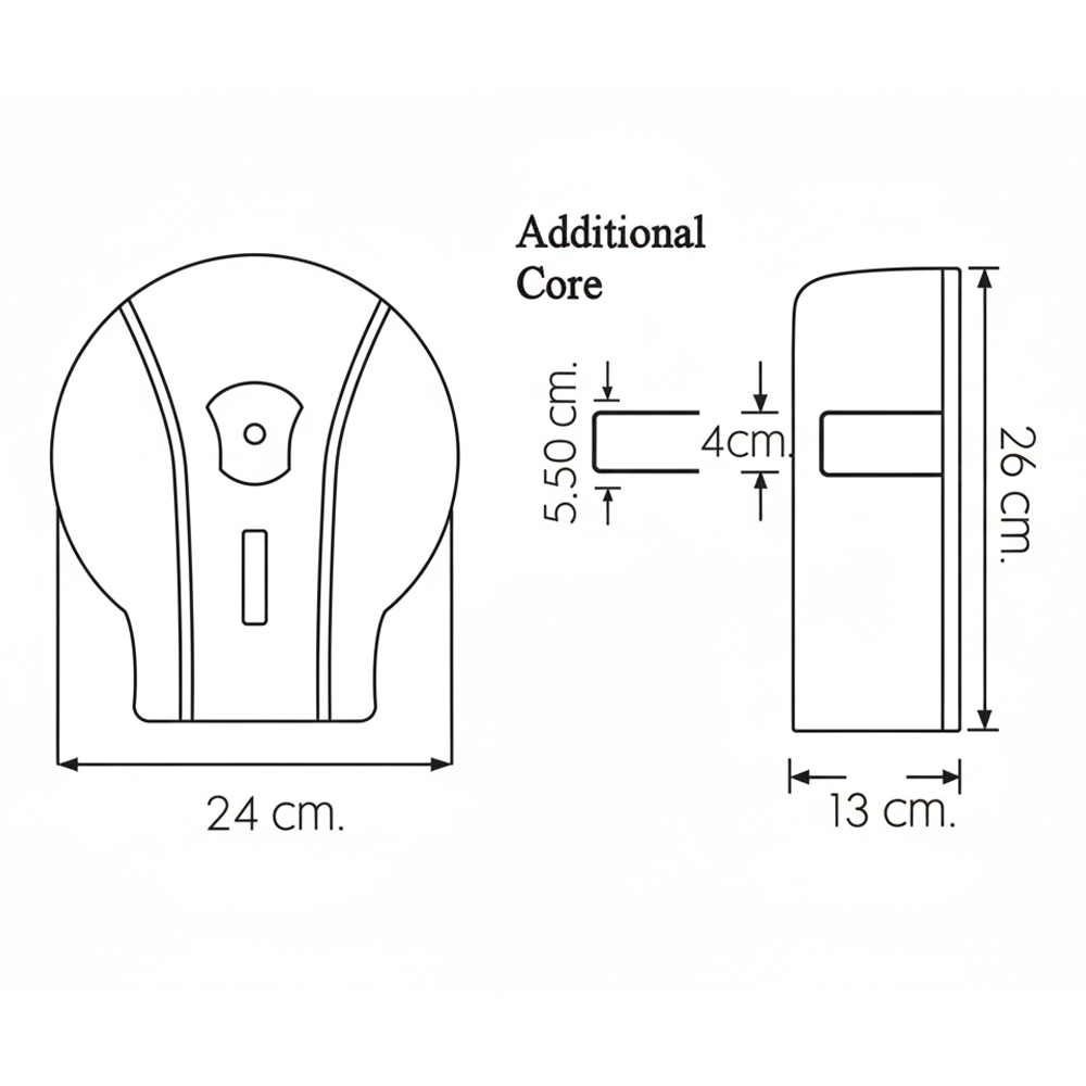 - السعة : يتسع لبكرات مناديل تواليت رول جامبو 500 جرام، أو بكرات بقطر داخلي يبدأ من 4 سم إلى 5.50 سم.