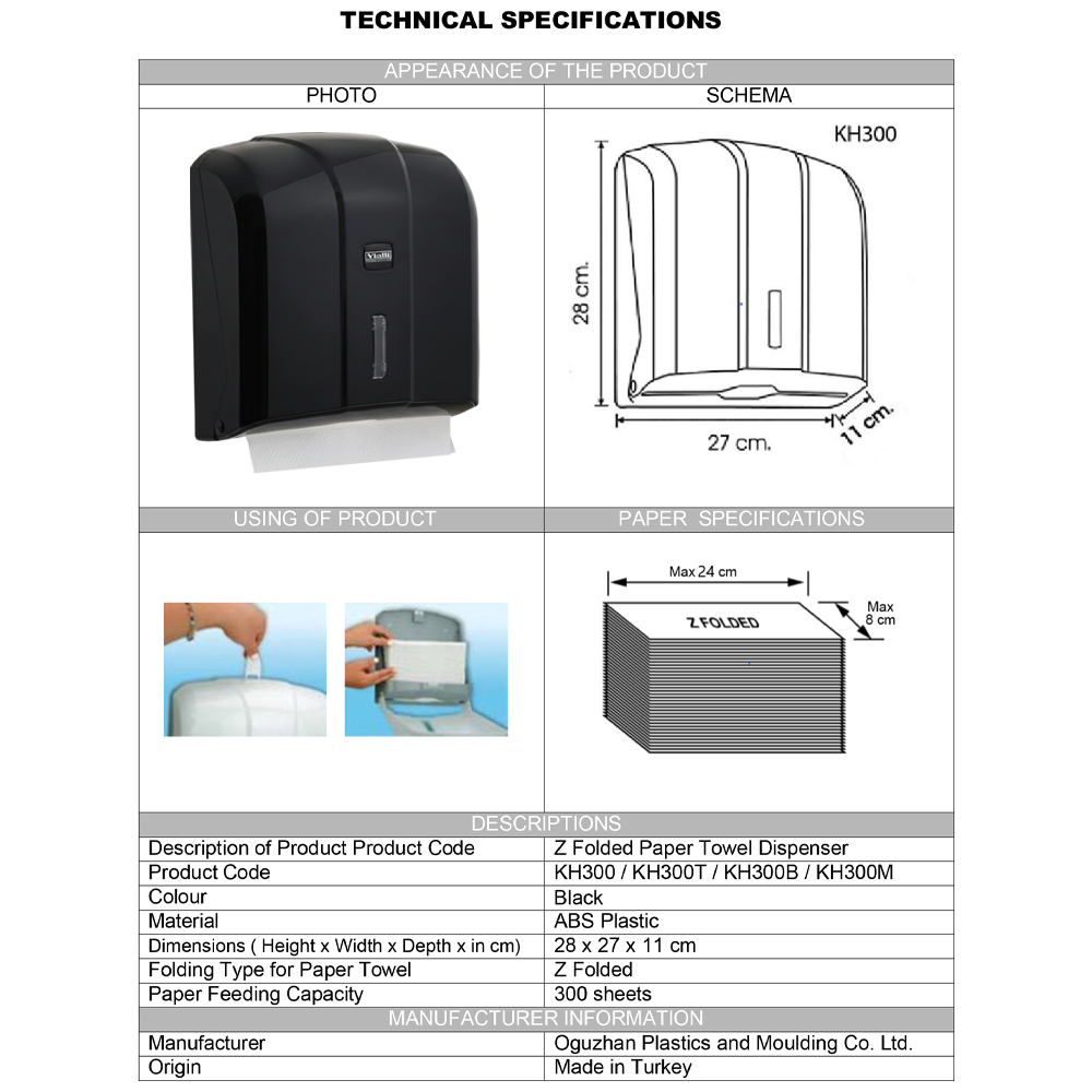 موزع مناشف ورقية Vialli التركي سعة 300 منشفة – اسود